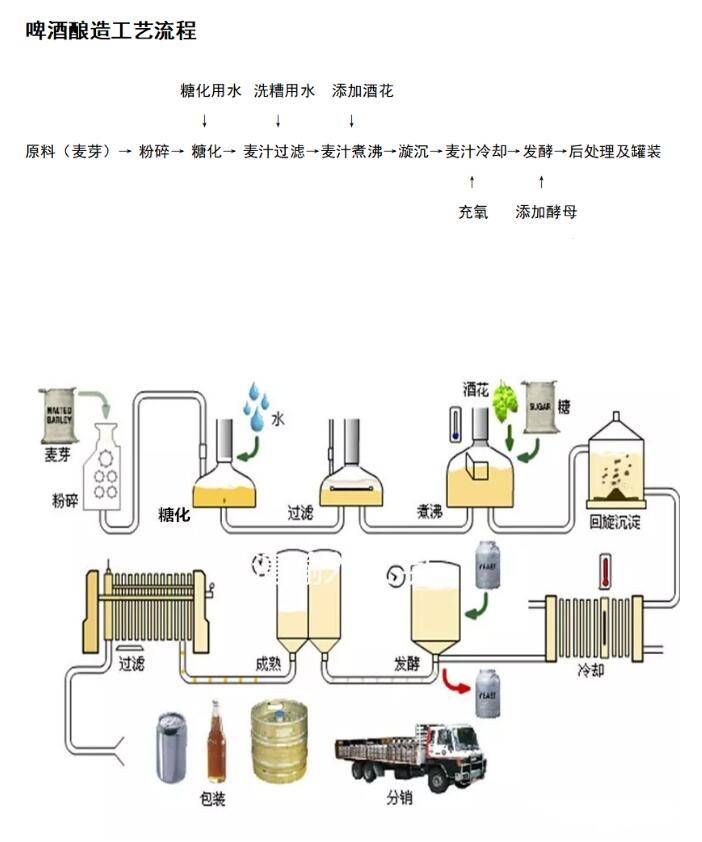 根據啤酒釀造工藝流程介紹啤酒釀造和設備配置工藝技術(shù)要求。我們先簡(jiǎn)單介紹啤酒釀造的過(guò)程。設備檢查到位(罐體清洗干凈,設備運轉正常),具備釀造條件。原料(麥芽、啤酒花、酵母、水)準備到位。